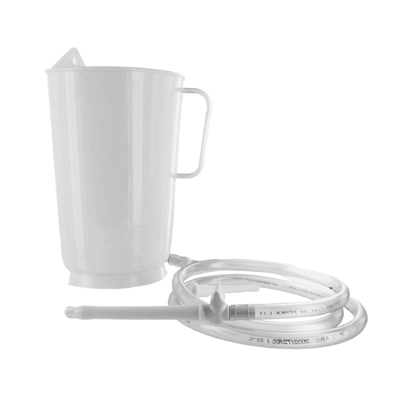 Dispositif de lavement anal ou vaginal. Le bock est livré avec 1 tuyau, 1 robinet, 1 canule.