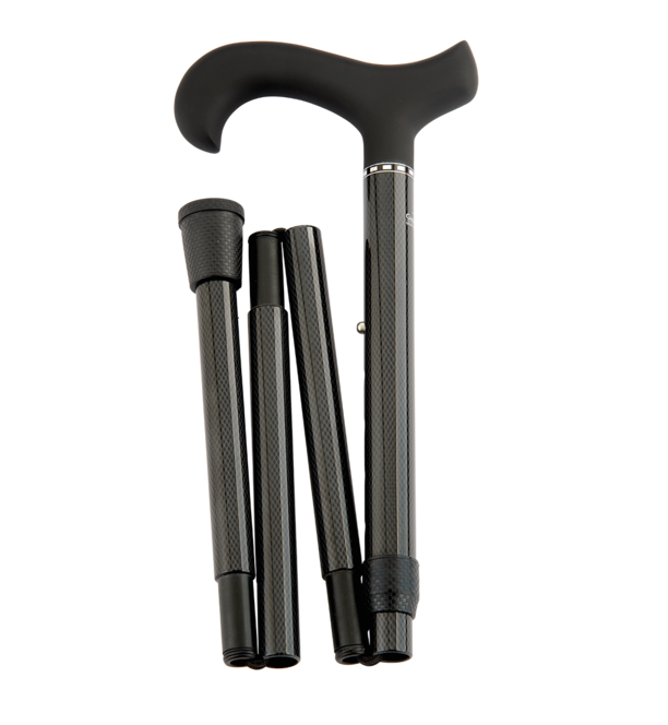Facilement réglable en hauteur. Entièrement pliable(en 4 parties). Design soigné et finition haut de gamme. Poignée Derby. Conception en carbone ultra léger et résistant. Embout de protection intégré.