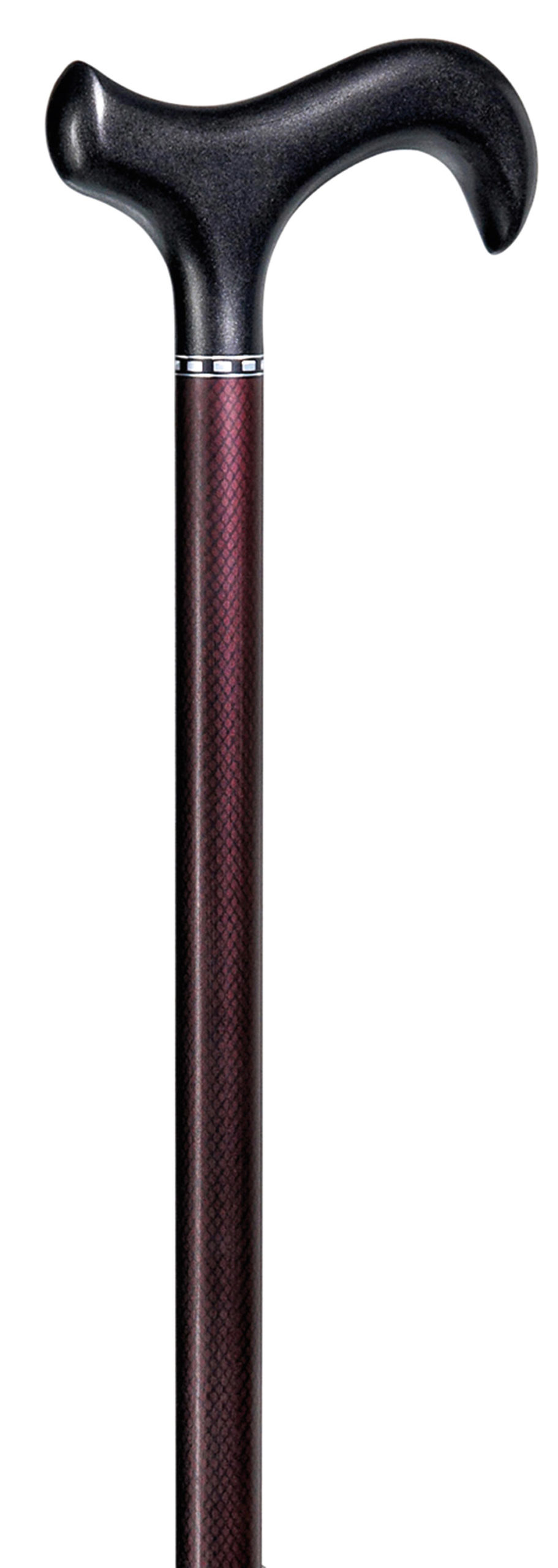 Canne de marche légère en carbone avec poignée Derby à revêtement souple. Réglable en hauteur. Avec tampon en caoutchouc.