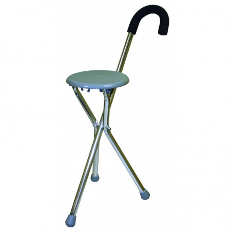 La canne siège avec trépied en métal est stable, légère et pliable.