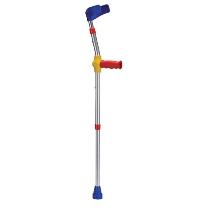Le modèle coloré à poignée souple est particulièrement adapté aux enfants. La hauteur de la béquille est réglable à plusieurs reprises, tant au niveau du tube que de la poignée. Les poignées souples permettent de « tenir » agréablement la béquille et offrent une prise ferme même aux mains sensibles