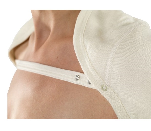 Avec des manches courtes, il couvre le haut du dos ainsi que l’ensemble des épaules. Bien ajusté au corps, il est confortable et discret à porter.