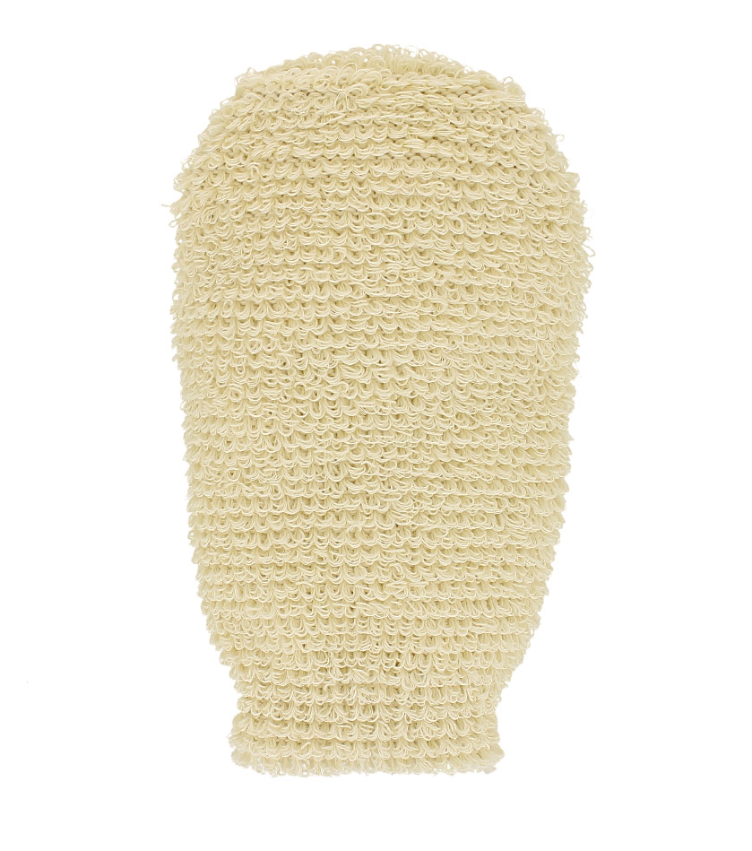 Gant de massage en coton à double face. Nourrit la peau et élimine les cellules mortes.