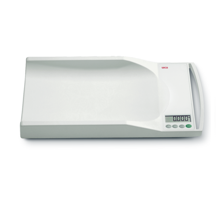 Pèse-bébé électronique portable peu encombrant et facilement transportable.