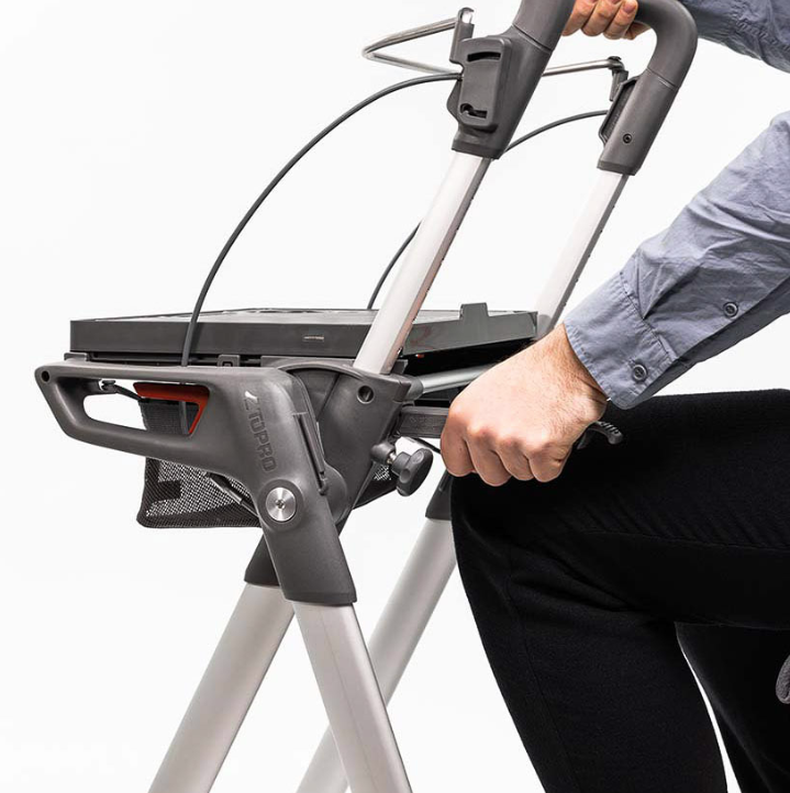 Le TOPRO Hestia peut être plié rapidement et facilement de manière compacte, tandis que le plateau est rangé en toute sécurité. Même replié, il tient debout tout seul.
